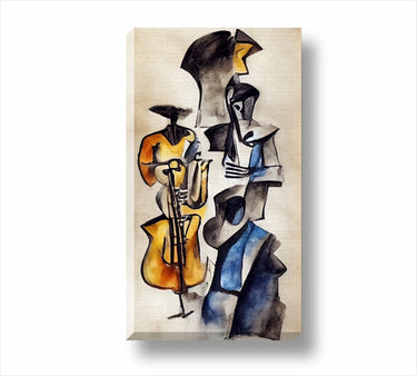 Нашата картина с Музиканти 4300201 е една феерия от цветове и настроение. С елегантните си линии и смелите си форми тя ще е чудесен акцент в интериора на един модерен дом. Рисунка с въглен и акварел, вдъхновена от стила на Пабло Пикасо.