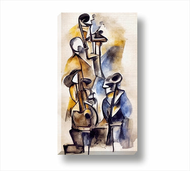 Нашата картина с Музиканти 4300202 е една феерия от цветове и настроение. С елегантните си линии и смелите си форми тя ще е чудесен акцент в интериора на един модерен дом. Рисунка с въглен и акварел, вдъхновена от стила на Пабло Пикасо.