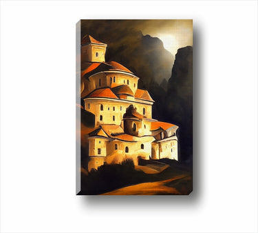 Нашата картина Средновековен манастир 2100604 е тайнствена и загадъцчна. С приглушените си цветове тя ще е един дискретен акцент на стената. Също така интересен подарък за приятел. Може да поръчате като картина върху канава (платно) на подрамка, като картина в рамка като картина върху стъкло или като обикновен постер, който после да залепите или рамкирате сами.