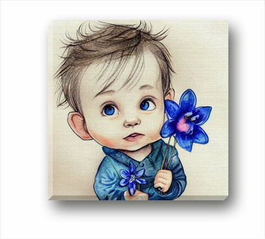 Тази картина с това Момче с цвете 7400201 ще ви забавлява ден след ден. Рисунка с молив и акварел, подходяща за детската стая.
