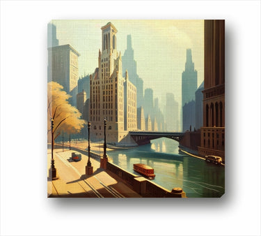 Как си представяме Чикаго в началото на века. Картина 2201701 от серията Ретро. Постер принт, рамкирана картина, пано върху канава, картина върху стъкло или плексгилас, ламиниран стикер, подходящ за баня, текстилен стикер, който можете да местите когато пожелаете