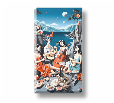 Нашата картина с Музиканти 4301000 е една феерия от цветове и настроение. С елегантните си линии и смелите си форми тя ще е чудесен акцент в интериора на един модерен дом. Рисунка с акрил, вдъхновена от стила на експресионистите.