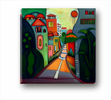 Светлини и сенки в слънчев ден на улицата. Картина, която нарекохме Градски пейзаж 2300501. Рисунка с пастели и смесена техника.