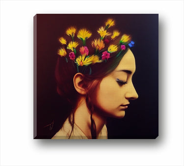 Цветя в косата 7100403 е с нежно излъчване. Тъга в погледа и скрита надежда - една цветна импресия на нашите автори.