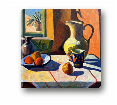 Натюрморт 8200701 с купа с плодове и бутилка в с елегантна игра на светлини и сенки. Рисунка с пастел в стила на Анри Матис