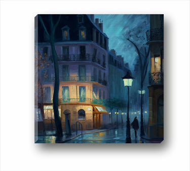 Приглушени светлини и романтика - това е нашата картина, която нарекохме Нощни улици 2200210. Рисунка с масло в стила на мипресионизма.