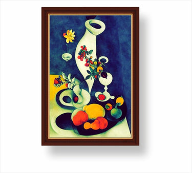 Тази наша картина Натюрморт 8300305 е вдъхновена от творчеството на Марк Шагал, от руския фолклор, от еврейската традиция и от въображението. Тя е едновременно екстравагантна и стилна. С ярките си цветове и оригиналните си форми тя ще бъде интересен акцент на стената. Също така може да бъде нестандартен подарък за приятел. Може да поръчате като картина върху канава (платно) на подрамка, като картина в рамка като картина върху стъкло или като обикновен постер, който после да залепите или рамкирате сами.